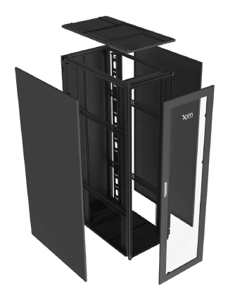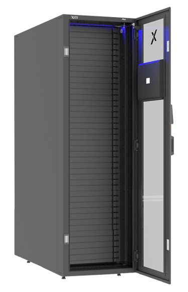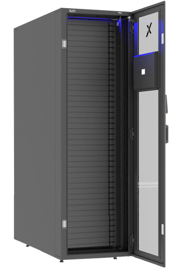 Gabinetes cerrados con capas de insulación y configuración de pasillo frío y pasillo caliente, listo para conectarse a aires de presición.