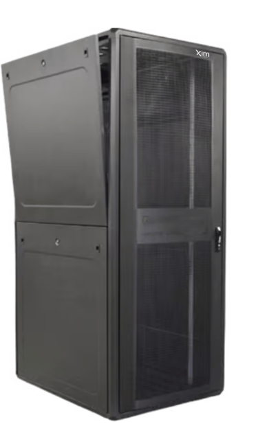 Gabinete de Exteriores de 23 unidades de rack para Telecomunicaciones para montaje en Poste elaborado en Acero Galvanizado con Grado de Protección NEMA 3R, cuenta con herraje de soporte a muro, en la puerta frontal cuenta con ventilas para el ingreso de aire protegido en su interior por filtros en malla mesh 80, ventilador en la puerta que realiza la extracción de aire caliente de la unidad.