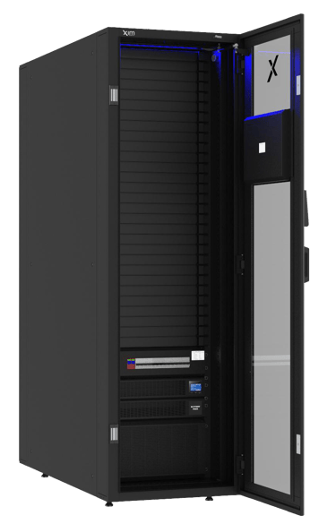 Cada uno con dos PDU inteligentes, Sensores de humedad y temperatura, apertura de puertas y derrame de liquidos conectado a un appliance y display touch que permite monitorear todas y cada uno de los elementos eléctricos y mecánicos del mini centro de datos. Por default viene un sistema de apertura automática cuando algo pueda fallar y la temperatura pueda subir.