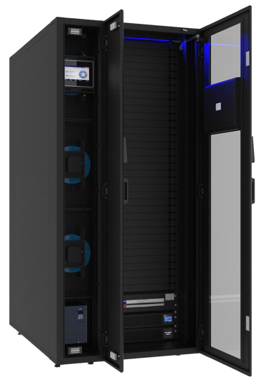 En un solo módulo su empresa tendrá su centro de datos, esto significa que tendrá un solo sistema de rack, un sistema de alimentación y distribución, así como refrigeración, monitoreo, sensores, PDU y también soluciones integrales de contención de pasillos fríos y calientes adaptadas a sus necesidades.