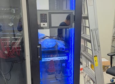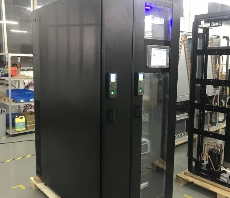 Micro Data Center, 6kVA de potencia, Aire acondicionado Inrow de 7.5kW, DCIM con sensores incluidos, controles de acceso para aire acondicionado y puerta delantera, Sistema Antifuego rackebale incluido.