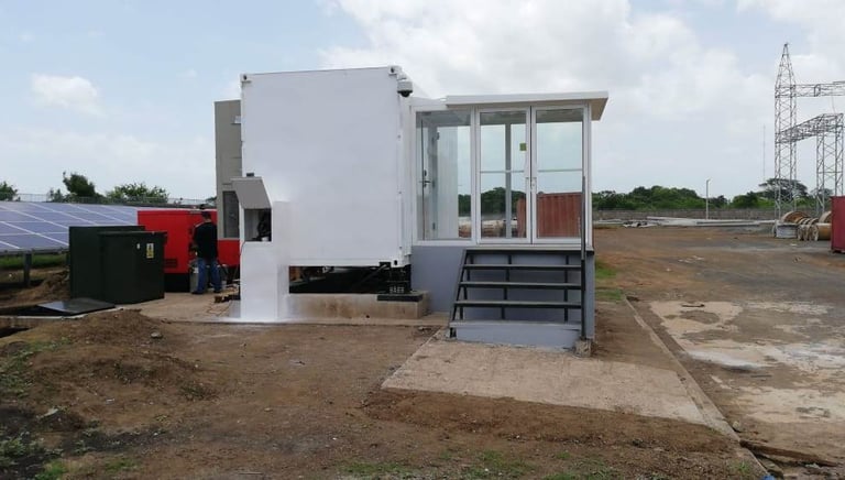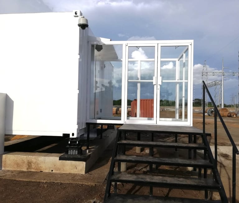 Contenedor de 20 pies High Cube, 60kVA N+1 4 gabinetes IT con autonomía de 10 minutos, sistema tipo VESDA