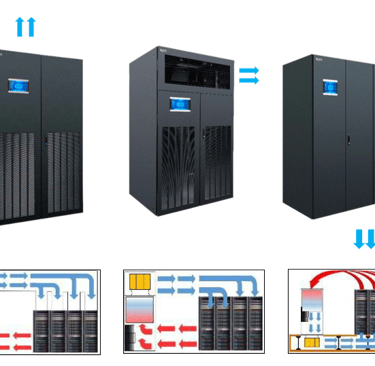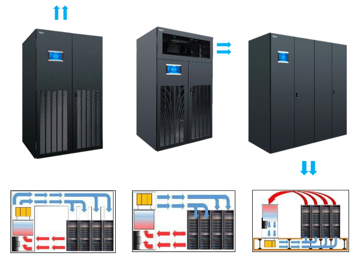 El sistema admite alimentación eléctrica en varias configuraciones de voltaje trifásico y ofrece opciones de refrigeración por aire en modo DX (expansión directa) o por agua helada (CW) con ahorro energético. Los modos de suministro de aire incluyen frontal superior, flujo descendente y ascendente.