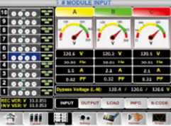 En cada módulo de potencia, hay monitoreo de componentes críticos mostrado en tiempo real, dando a los clientes una vista del estado interno del sistema y proporcionando información de recordatorio para el mantenimiento, tiempo de funcionamiento de los condensadores y ventiladores exhibidos y grabados