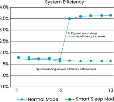 La función Smart Sleep puede mandar a dormir de manera inteligente algunos módulos cuando la carga es relativamente baja, mejorando la eficiencia de los restantes módulos de potencia y de esta manera generar ahorro en costos de energía y enfriamiento.